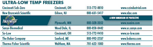 “利用外来制冷剂的一些系统可以获得比-85℃的低得多,”巴克纳Richerson,在G际销售副总裁解释NuAire(普利茅斯,MN)。例如,超低温冰箱达到-150℃的温度,这对于存储医疗过程的骨髓是有用的。“但是这些都是相当昂贵的,不会有太多的销售,”Richerson告诉实验室经理。